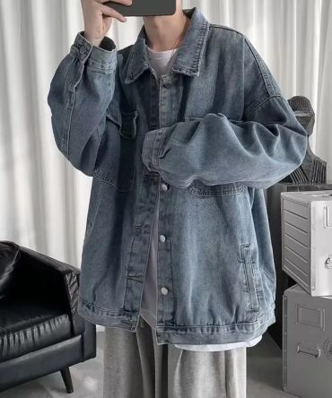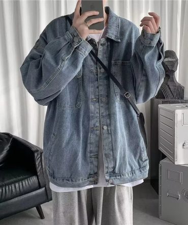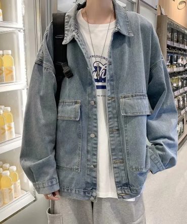 Men Spring Autumn Fashion Casual Versatile Plus Size Long Sleeve Lapel Denim Jacket