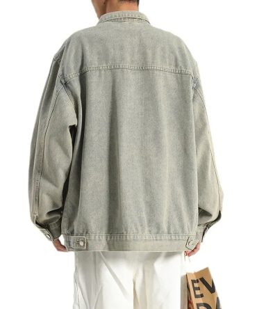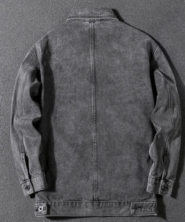 Men Casual Retro Lapel Long Sleeve Multi Pocket Single Breasted Loose Denim Jacket