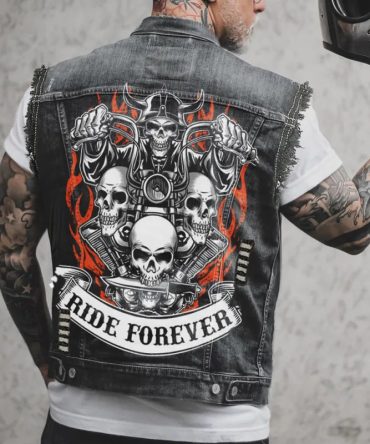 Men Casual Sleeveless Lapel Single Breasted Skull Knight Denim Vest