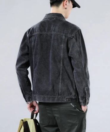 Men Fashion Casual Plus Size Long Sleeve Lapel Black Denim Jacket