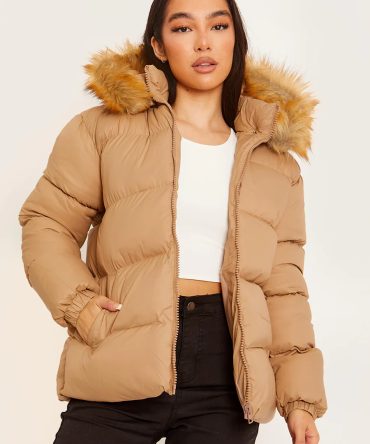 Faux Fur Trim Hood Padded Puffer Jacket