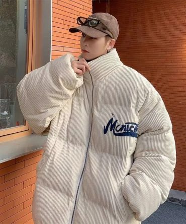 Men Autumn Winter Fashion Casual Commuter Letters Embroidery Solid Color Corduroy Zipper Cotton Coat