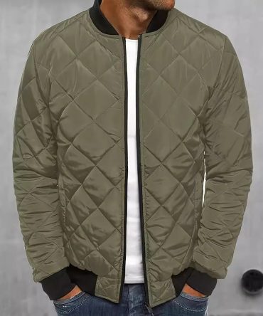 Men Autumn Winter Casual Solid Color Quilted Long Sleeve Coat