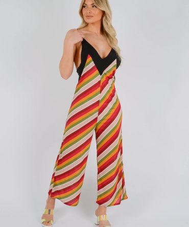 Multi Colours Halter Neck Open Back Slinky Jumpsuit