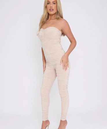 Slinky Ruched Bodycon Fit Bandeau Jumpsuit