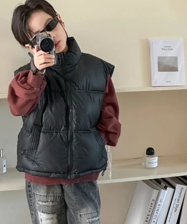Winter Fashion Casual Solid Color Sleeveless Stand Collar Padded Vest