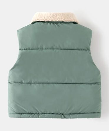 Kids Casual Cute Bear Ear Decor Zipper Design Pocket Sleeveless Quilted Jacket