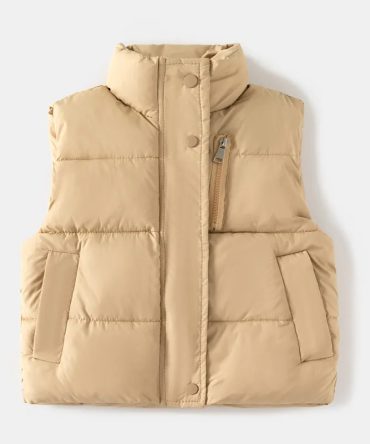 Kids Basic Solid Color Thickening Stand Neck Down Jacket Vest