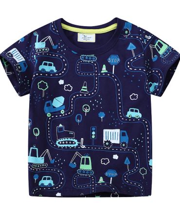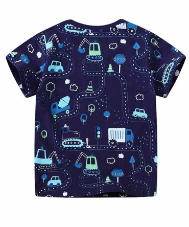 Boys Casual Cute Car Print Short Sleeve T-Shirt