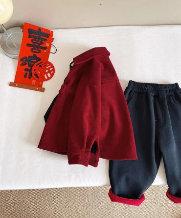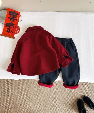 Boy’S Fashion Casual Fleece Lapel Long-Sleeve Blouse