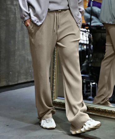 Men Fashion Casual Spring And Autumn Jacquard Stripe Drawstring Wide-Leg Pants