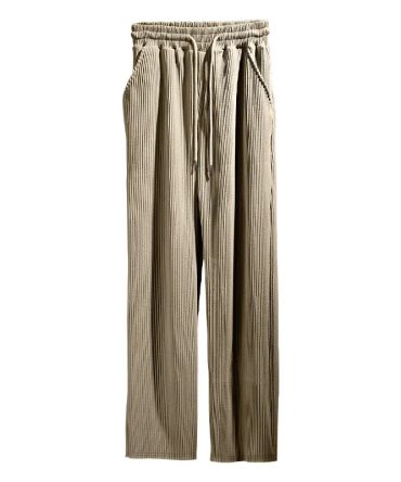 Men Fashion Casual Spring And Autumn Vertical Stripes Drawstring Wide Leg Pants