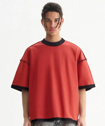 Men Fashion Casual Contrast Color Double Face Short Sleeve Loose T-Shirt
