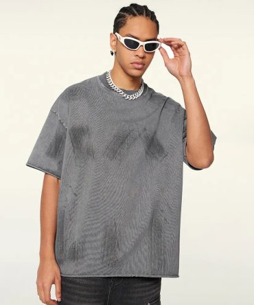 Men Casual Distressed Solid Color Short Sleeve T-Shirt