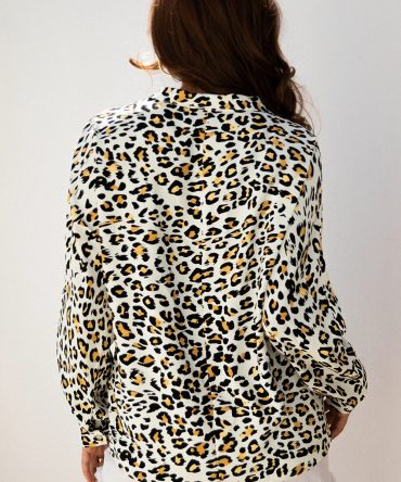 Khaki Leopard Print Contrast Striped V Neck Blouse