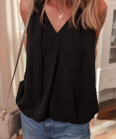 Black Guipure Lace Crochet Keyhole Back Tank Top