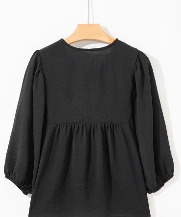 Black Bow Tie Neck 3/4 Sleeve Casual Blouse