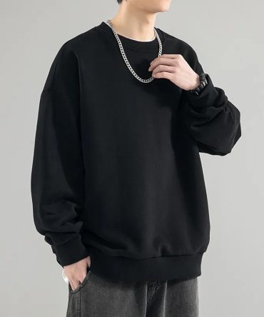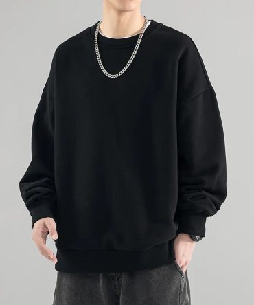Men Spring Autumn Fashion Casual Versatile Solid Color Long Round Neck Sweatshirts