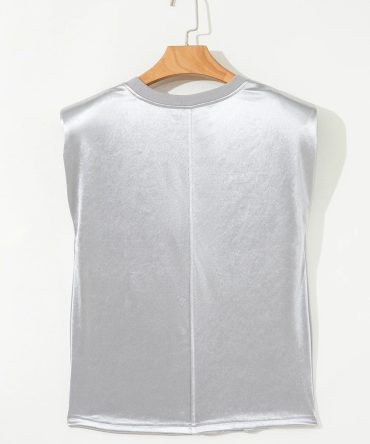 Be the first to review “Blue Sapphire Solid Color Stitching Detail Round Neck Tank Top”