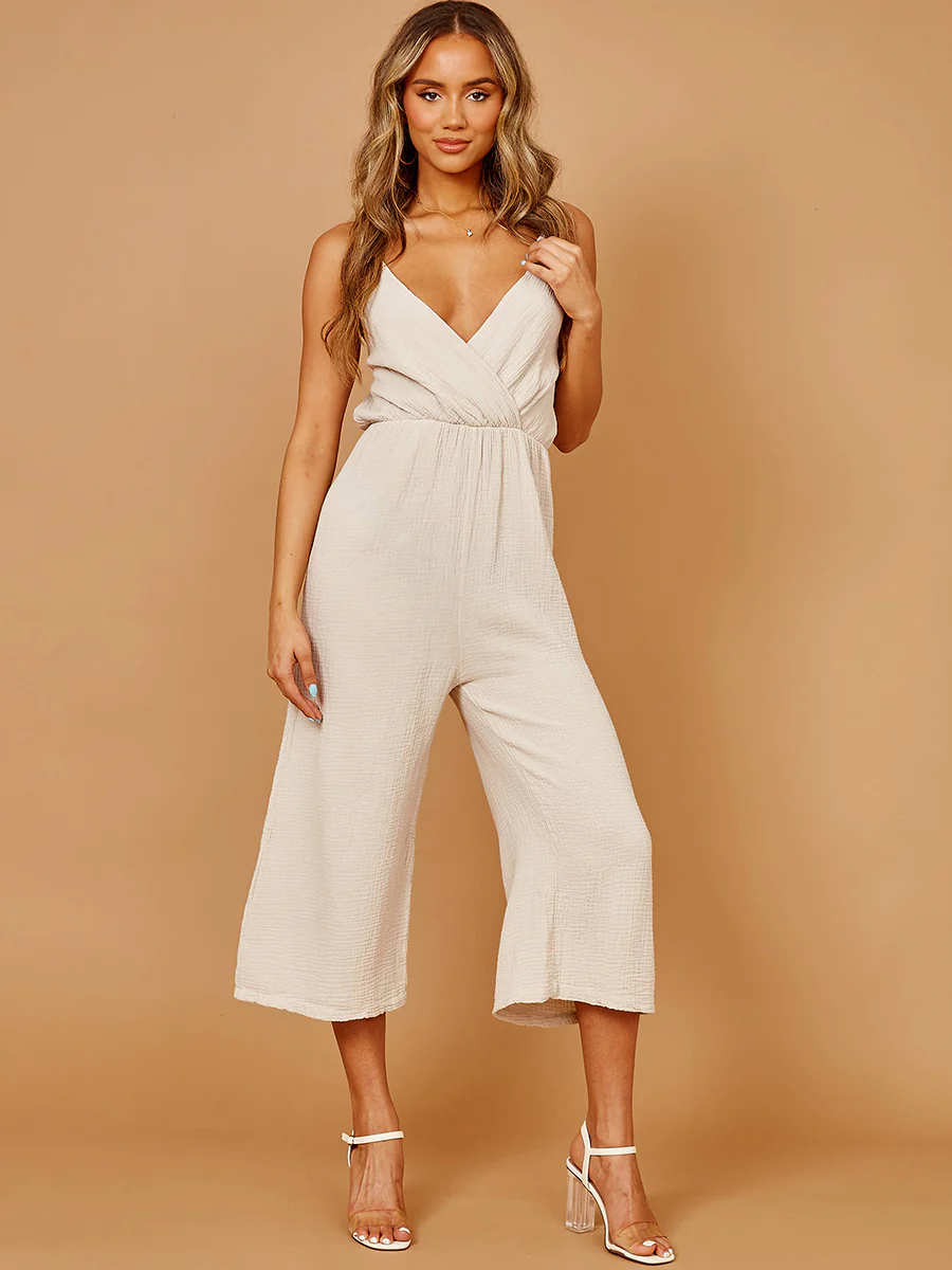 Crinkled Wrap Front Cami Culotte Jumpsuit