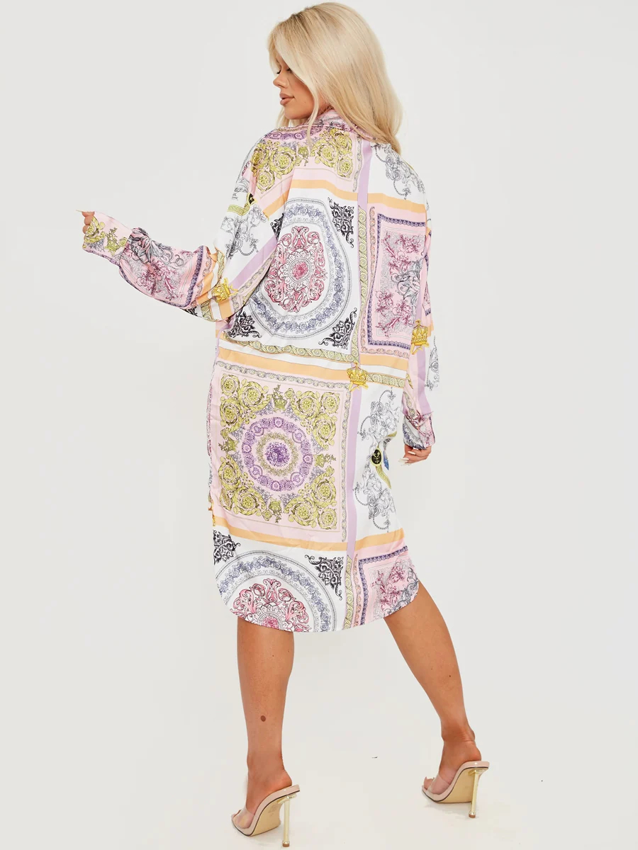 Be the first to review “Patterned Print Dip Hem Shirt Dress”