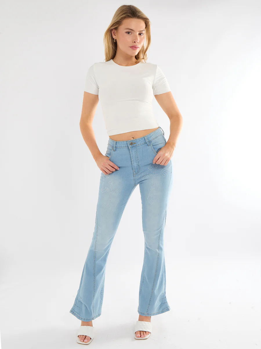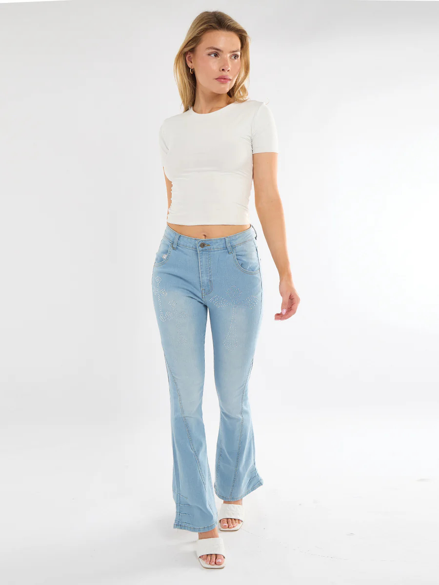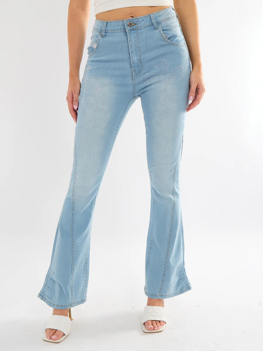 Wide Leg Cross Studded Denim Jeans