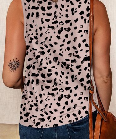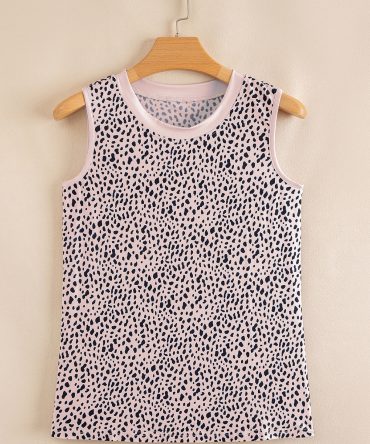 Apricot Leopard Round Neck Tank Top