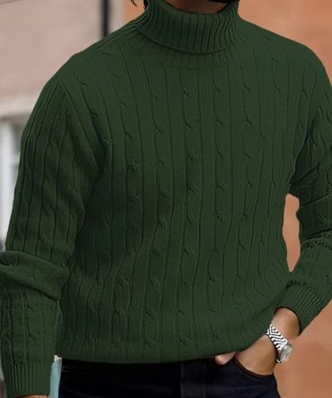 Autumn And Winter High Collar Long Sleeve Men Casual Solid Color Knitted Sweater