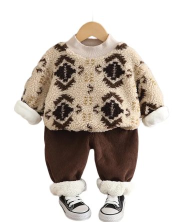 Autumn Winter Fashion Casual Corduroy Fleece Long Sleeve Sweatshirts Trousers Sets